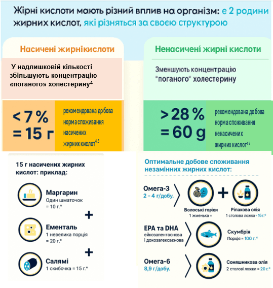 Важливо розуміти різницю між «хорошим» і «поганим» холестерином, а також роль насичених і ненасичених жирних кислот у Вашому раціоні.